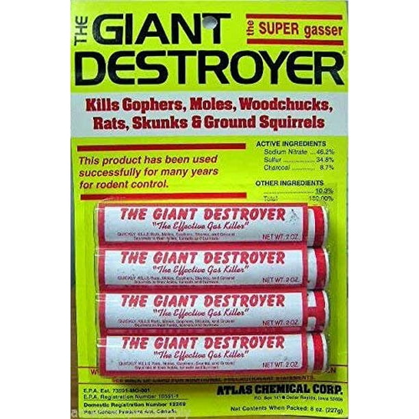 Giant Destroyer Smoke Bombs 12 Pack 48 Sticks Kills Moles Gophers Skunks Rats Squirrels Walmart Com Walmart Com
