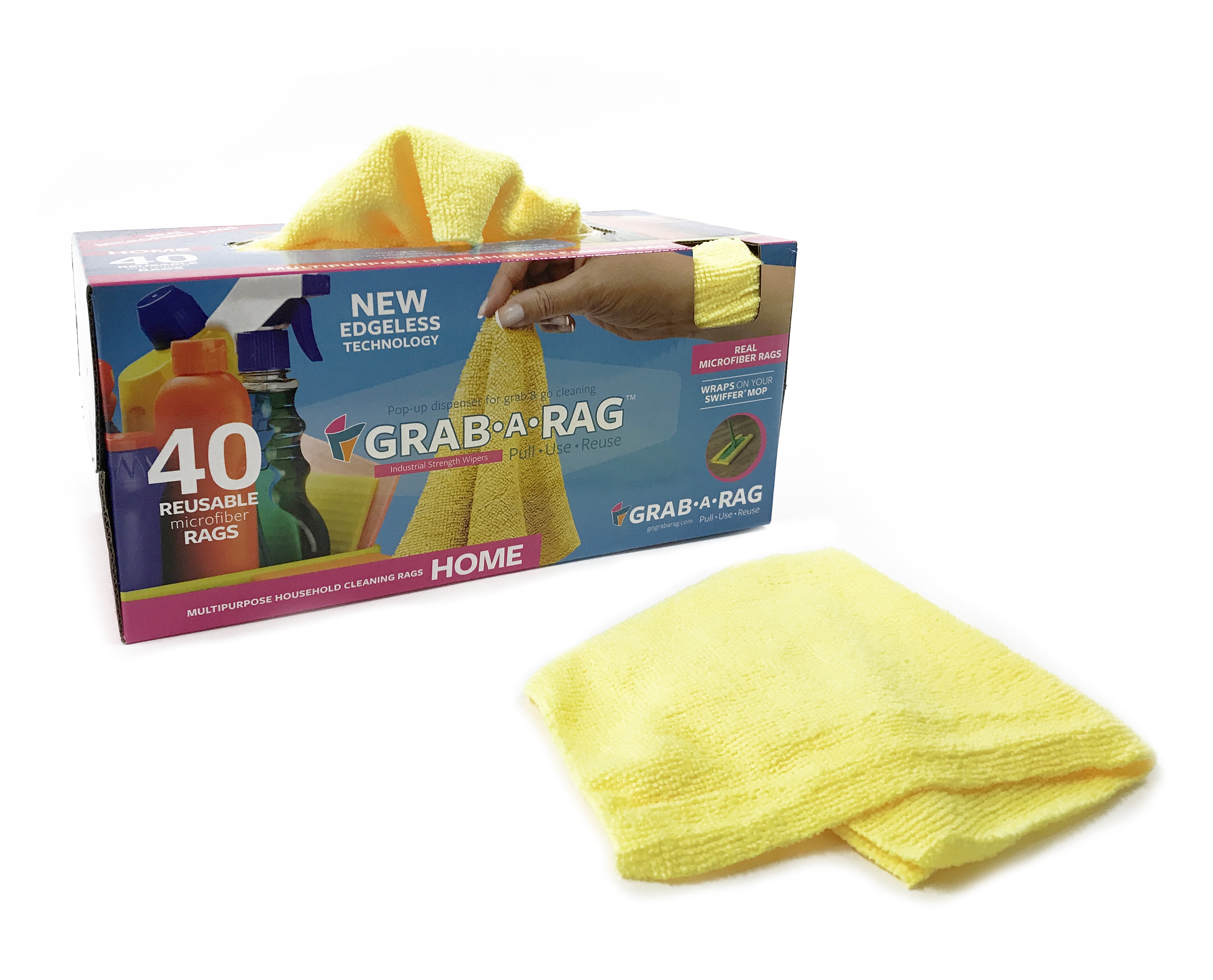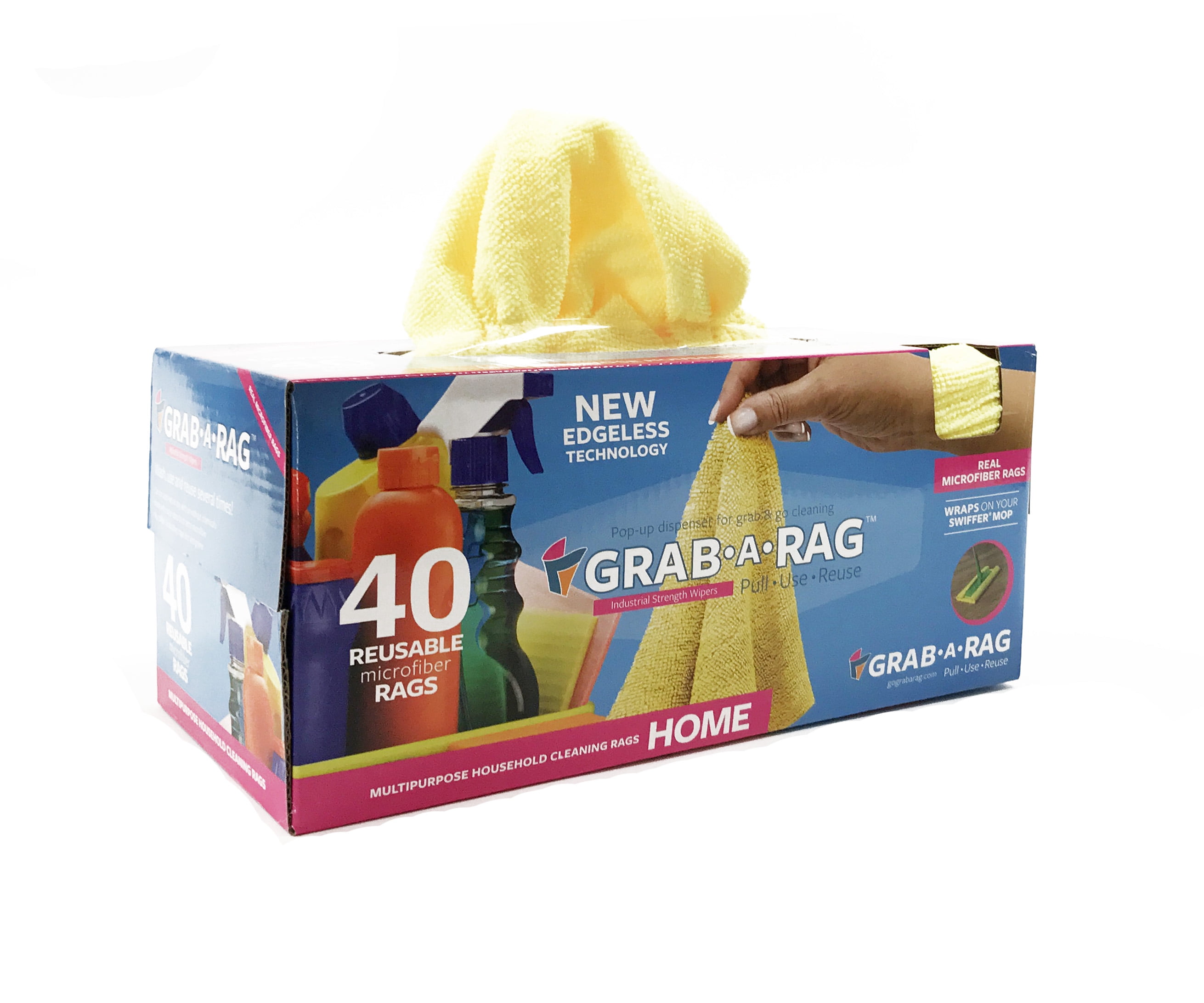Grab a rag microfiber. GrabARag microfiber reusable rags come in a convenient pop up dispenser which keeps rags clean organized and easy to grab. Convenient pop up dispenser. NEW 40PK Grab a Rag.